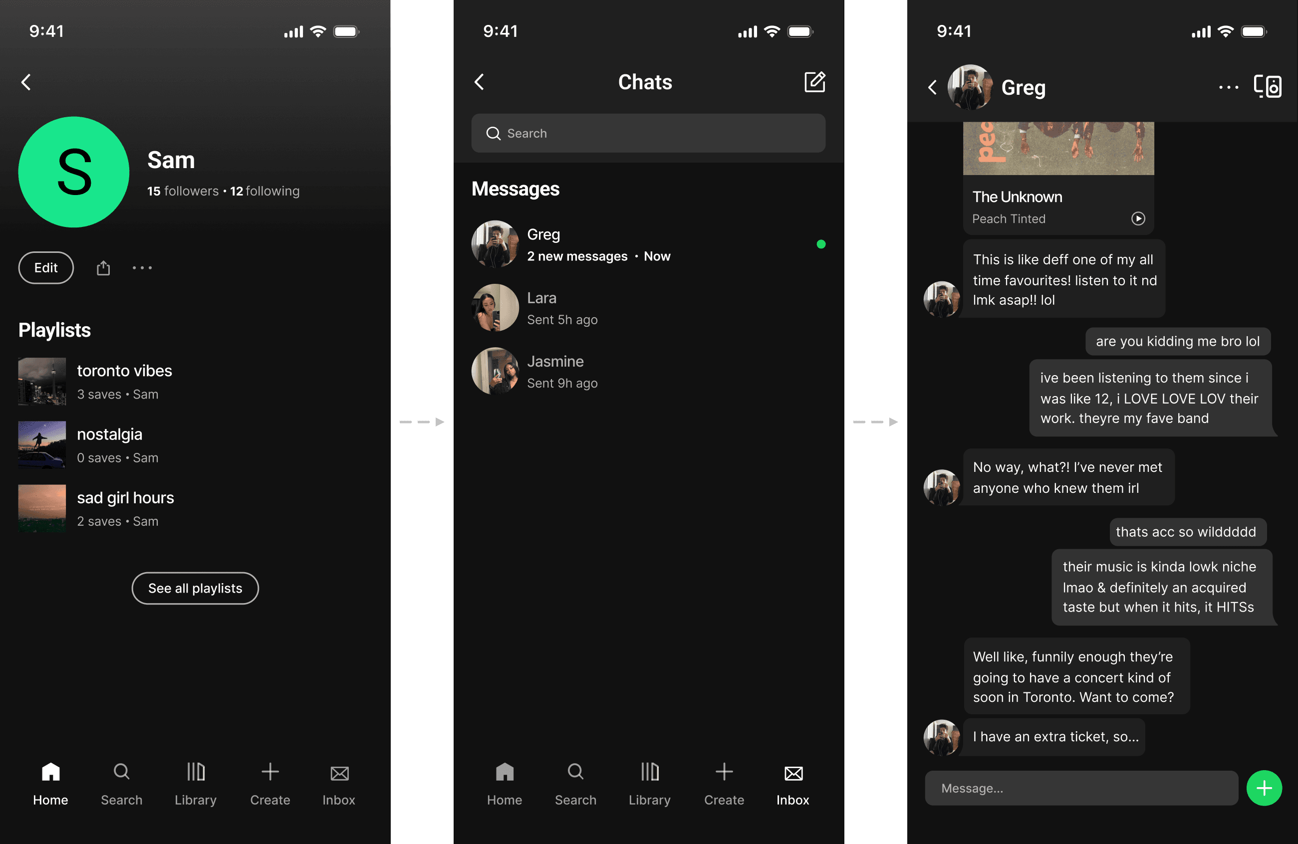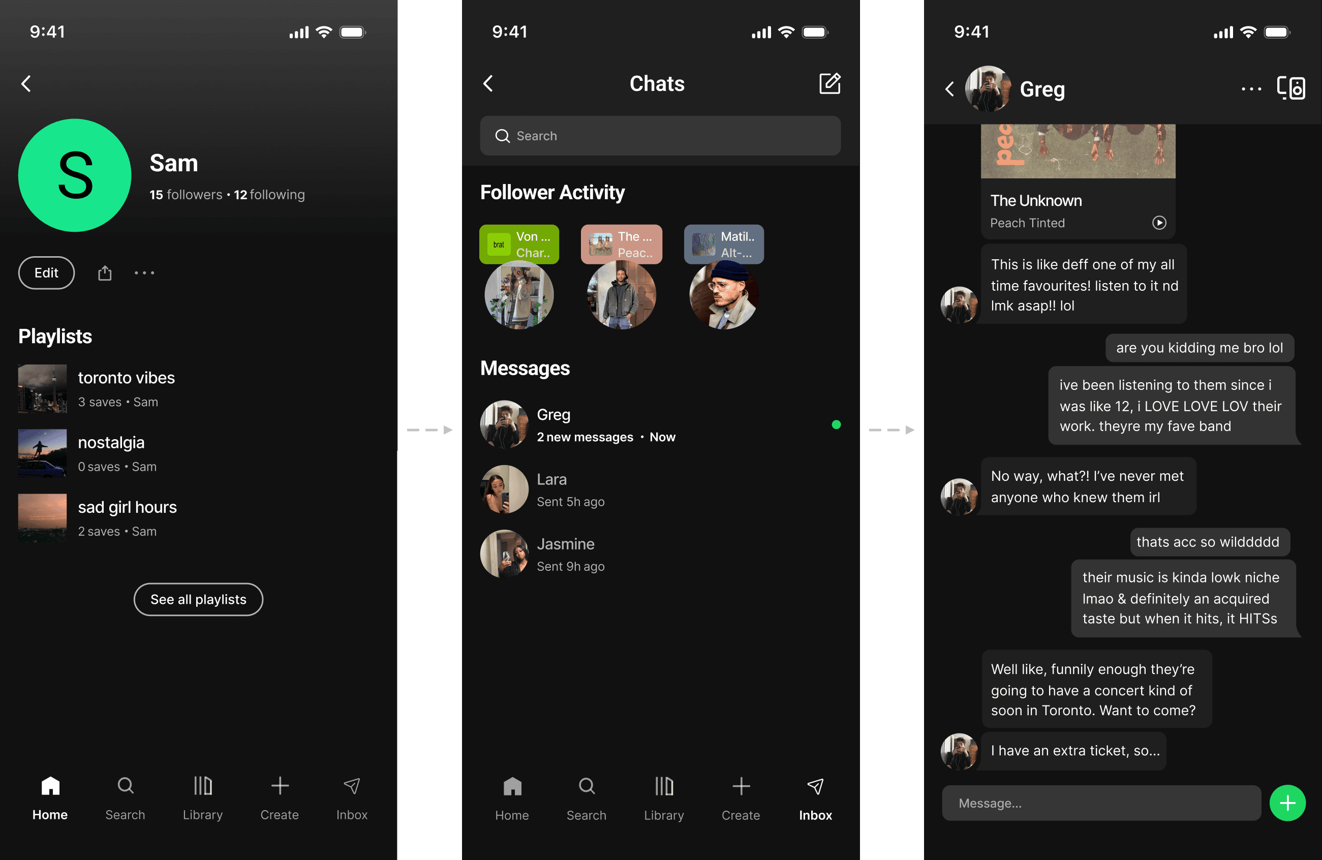 The added inbox creates a dedicated space for users to share music. It keeps interaction centered on music without introducing more complexity.