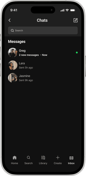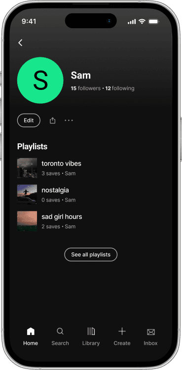 The added inbox creates a dedicated space to share music, add context, and exchange ideas. It keeps interaction centered on the music itself without introducing layered complexity.